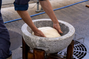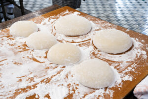 つきあがったお餅は年神様をお迎えし新年を迎えるために「鏡餅」として成形します。