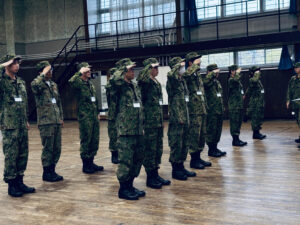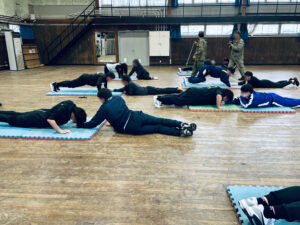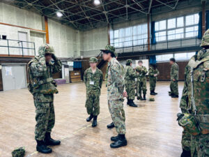 当日は、室内での体力測定や装備品の装着体験、屋外での敬礼・行進といった基本動作の体験という内容でご対応いただきました。