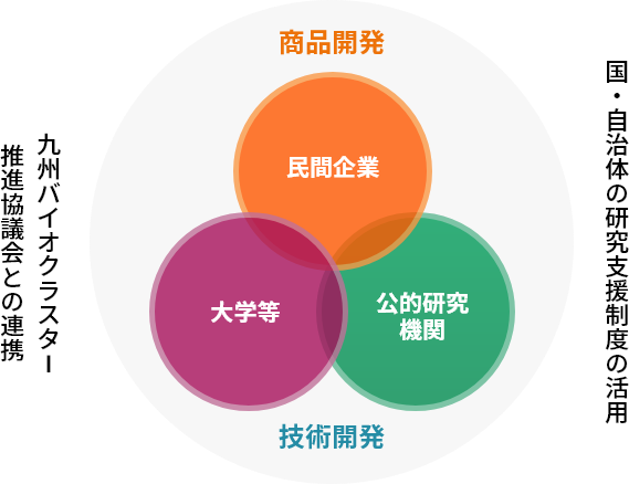 一番食品では、新技術の開発や、新事業の創出を図ることを目的に、民間企業(産)、大学などの教育,研究機関(学)、政府・地方公共団体(官)とが連携して取り組む産学官連携の共同研究を通じ、将来を見据えた基礎研究や技術開発に取り組んできました。